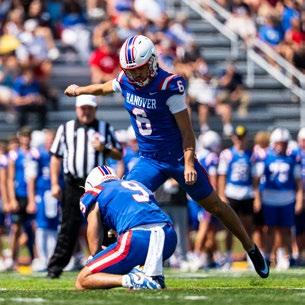 In the opening round of the NCAA tourney, Hanover battled No. 19 Calvin University Nov. 20 at Bloomington, Ill. The Panthers lost to the Knights (26-3) in three sets, falling 25-21, 25-23, 25-15. Hanover was led by outside hitter Abbey McCoy ’27 with 10 kills. Setter Brook Gervers ’28 posted 14 assists and libero Madison Schicker ’28 had 12 digs.
