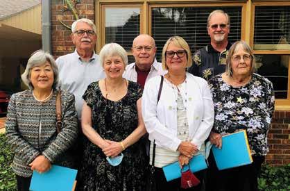 MEREDITH BUBEL GREGG ’62 was honored last September as a longtime Madison, Ind., book club coordinator. Kimm Hollis, professor emeritus of music, and Marsha Dutton, former English professor, presented a special program of music and poetry. Attendees included (front l-r): Mi Yung Yoon, international studies professor, Dutton, SUSAN MARTIN STUDDS ’76 and Gregg. (Back l-r): Darryl Steinert, professor emeritus of physics, Hollis and JEFFREY STUDDS ’77