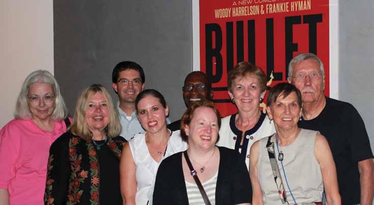 BETSY MILLIGAN JOHNSON ’70 and a few Hanoverian theater buffs attended the Off-Broadway play, “Bullet for Adolf,” written by WOODY HARRELSON ’83 and his friend, Frankie Hyman. First row (l-r): JENNIFER RHEA DAVIS ’82, BARBARA FARRAR-EVANS ’69; middle row (l-r): Johnson, ALLISON CORRELL RIESTER ’98, President Sue DeWine, Prof. Emeritus of Theatre Tom Evans; back row (l-r): BETTY HOWE ’72, JON RIESTER ’98, TERRY ROBINSON ’74. The play runs through Oct. 21 at New World Stages. You can order tickets at bulletforadolf.com.