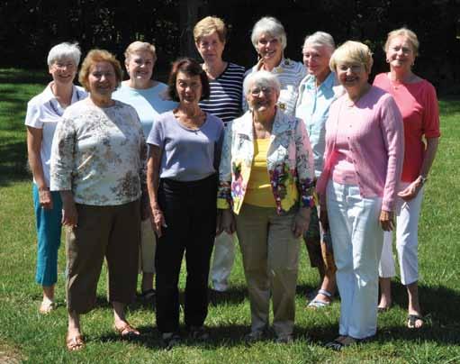 Phi Mu sisters from the class of 1964 returned to Hanover in June for a mini-reunion to celebrate each of them turning 70. Front row: (l-r) SANDY NICE SCAMEHORN, ELLEN SWIGART BOSO, GAIL ANDERSON MILNE, GINNY COOPER BALLINGER. Second row (l-r): DONNA KINCHELOE BRAND, LINDA PATTON LUEDEKE, KAREN KREIDER ROBERTS, JANIS SMALL, NANCY SCHEIRER SECKER, PAM CHOWNING BEAUBIEN.