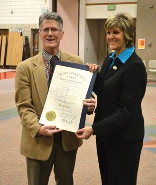 Governor MIKE PENCE ’81 named JIM NIXON ’73 a Distinguished Hoosier, March 28, at a surprise, school-wide celebration. Nixon plans to retire this spring after 36 years in education, as both principal and classroom teacher. His staff at South Side Elementary (Kendallville, Ind.) and members of the community nominated him for this honor, facilitated by State Senator Susan Glick. Nixon's wife, JULIA WENDT NIXON ’73 will also retire after 27 years in public school service, having worked as a classroom teacher, a media specialist and in a literacy professional