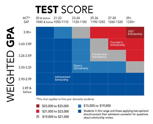 All students who apply for admission will automatically be reviewed for an academic merit scholarship. These renewable four-year scholarships range from $5,000 - $25,000.