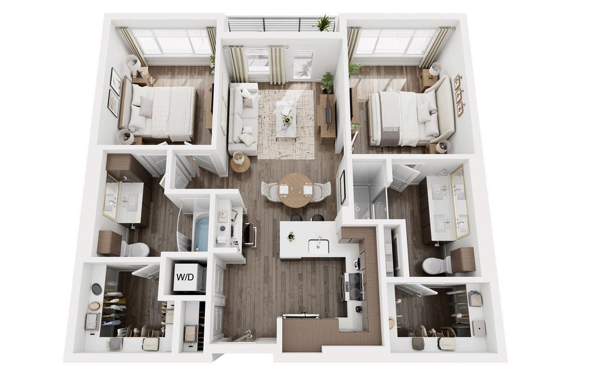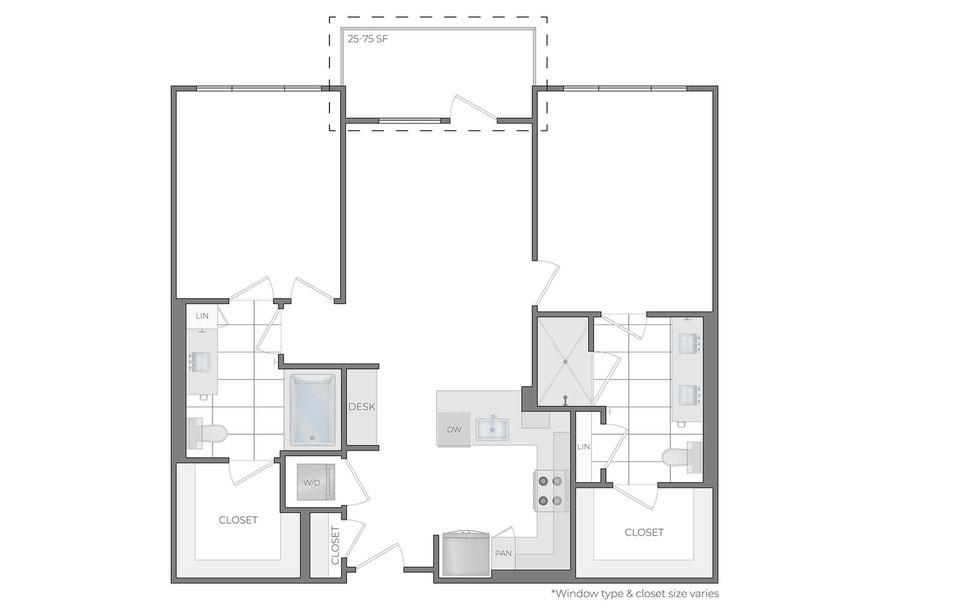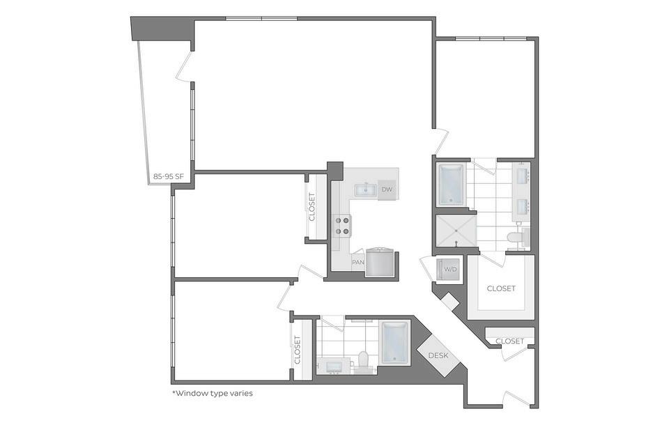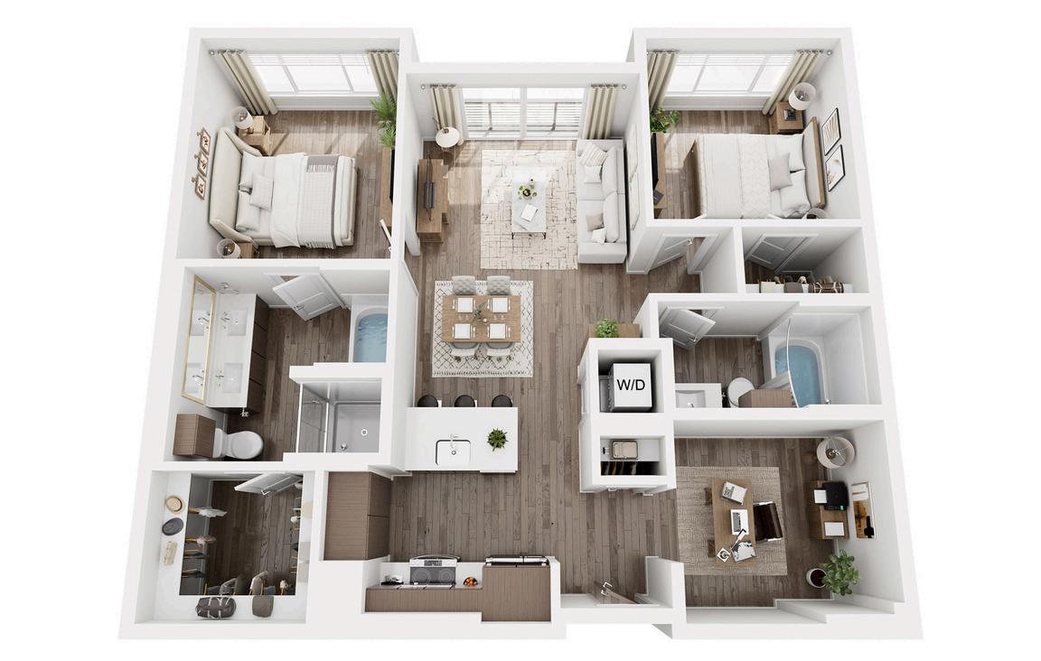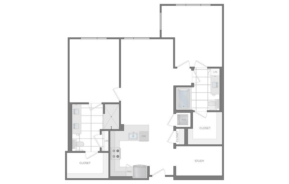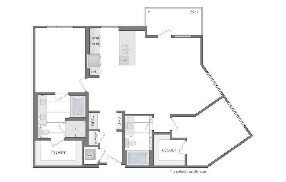 Interior: 1,163-1,276 SF | Terrace: 0-81 SF | Total: 1,163-1,357 SF 2 Bed / 2 Bath / Study