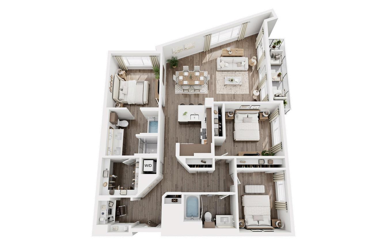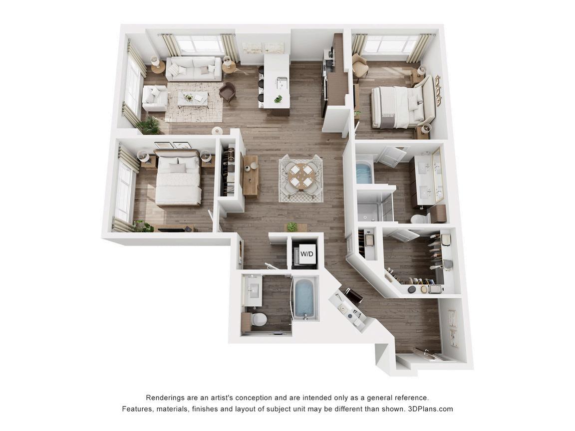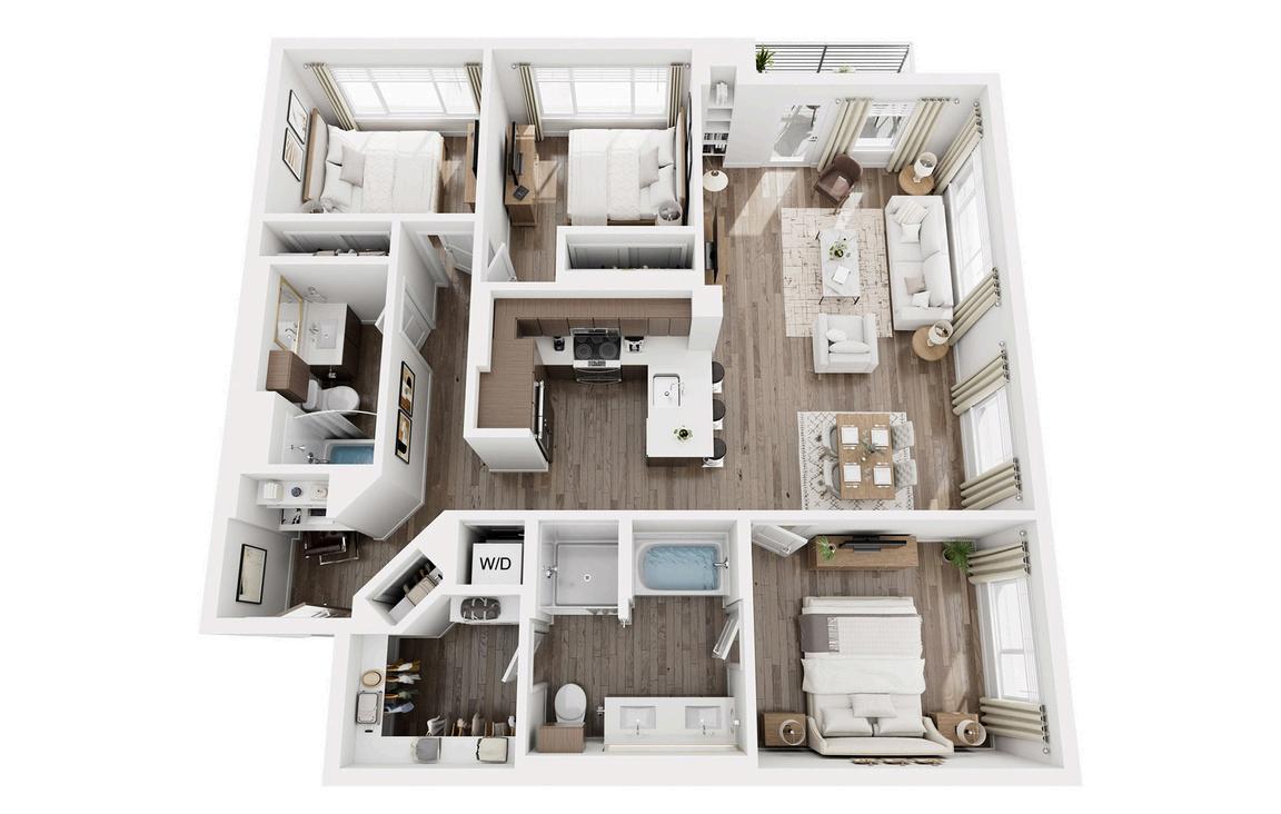 Interior: 1,530 SF | Terrace: 0-75 SF | Total: 1,530-1,605 SF 3 Bed / 3 Bath