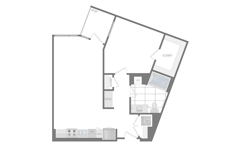 Interior: 737-760 SF 1 Bed / 1 Bath