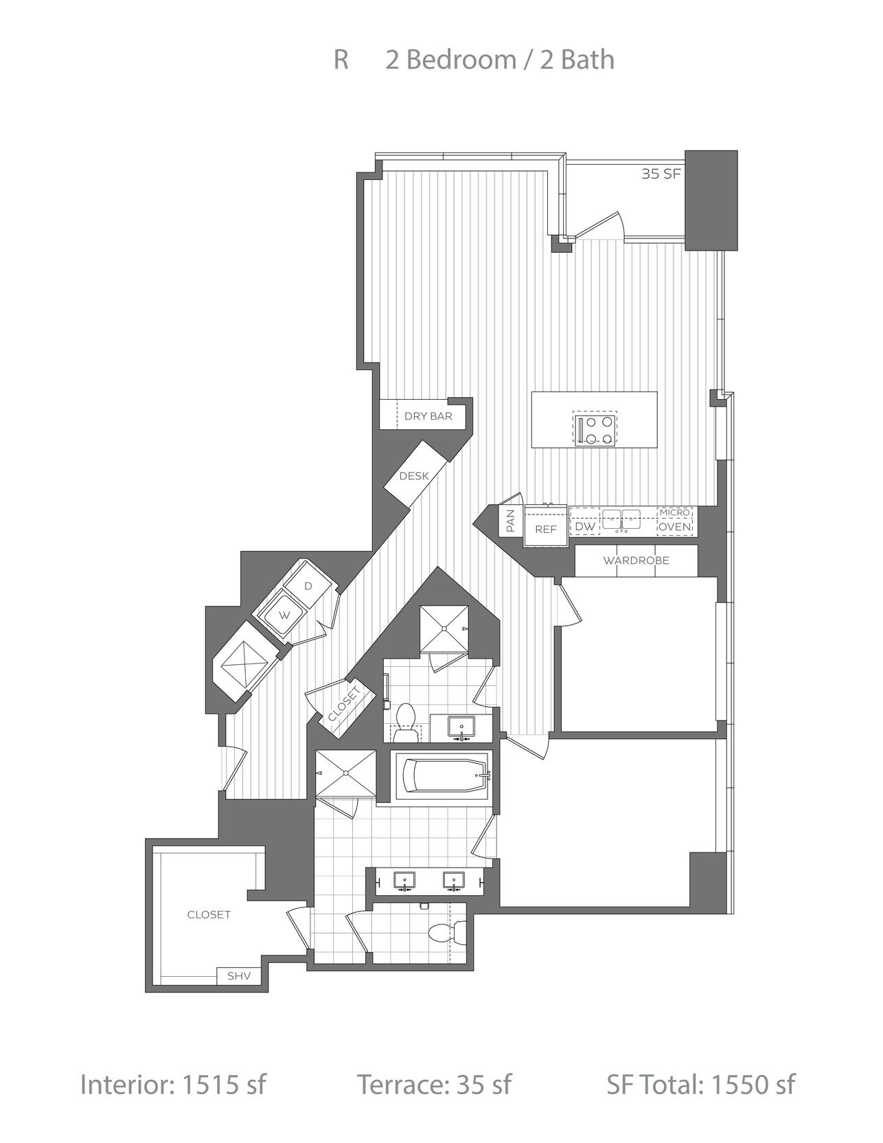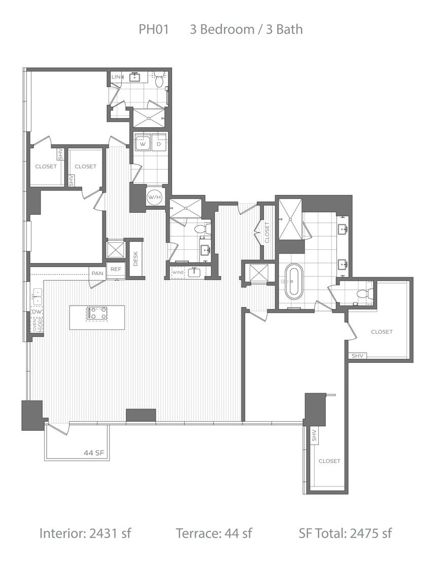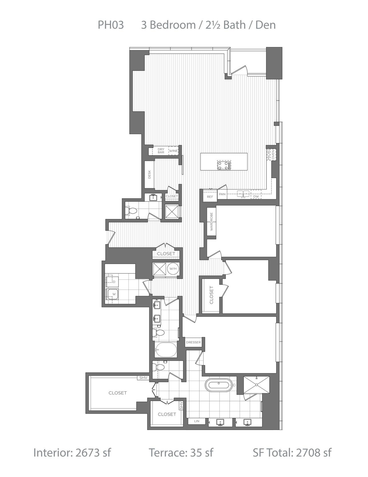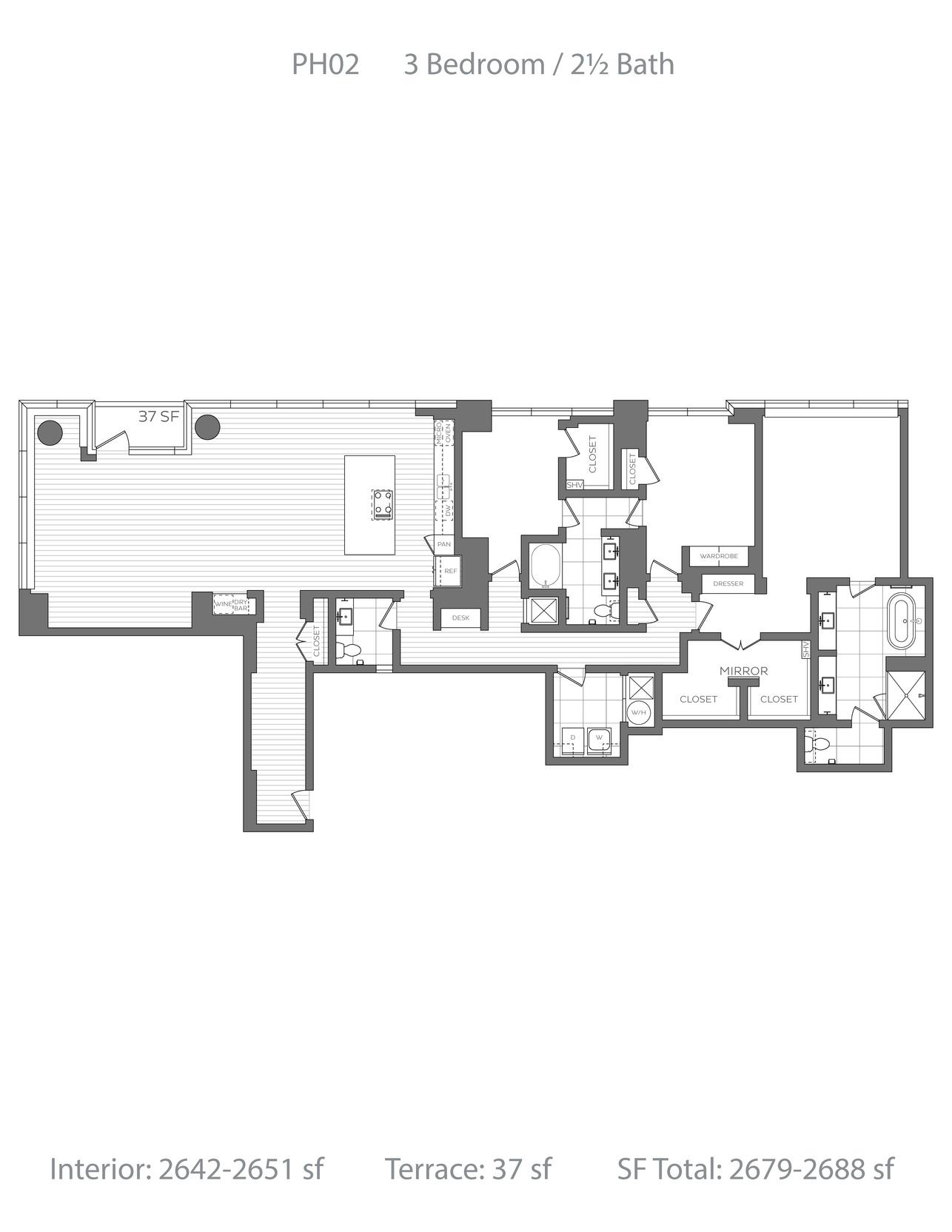 Penthouse collection featuring elevated three-bedroom homes with premium appliance packages, undercounter wine coolers, freestanding soaking tubs and prominent fireplaces