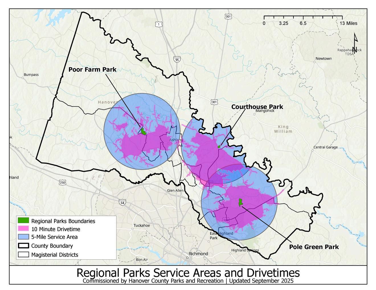 The Hanover County Parks and Recreation Master Plan serves as a comprehensive guide for the strategic development, enhancement, and stewardship of the County’s park system, recreational facilities, programs, and natural resources over the next decade With a growing population and evolving recreational trends, the plan is designed to ensure that Hanover County remains responsive to the current and future needs of its residents By aligning with the County’s Comprehensive Plan and regional priorities, the Master Plan provides a framework for informed decision-making that supports both quality of life and sustainable community growth.