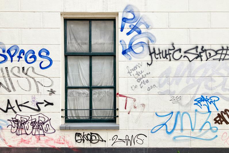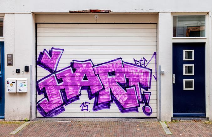 brug te ver. Ook graffiti omarmen gaat het niet worden. Ze zien wel een oplossing: mooie muurschilderingen maken opdat verfspuiters hun lelijke tags voor industrieterreinen en fietstunnels bewaren. Nog even nagaan wie hiertoe het initiatief moet nemen, de verenigde buurtbewoners of de gemeente? Maar hebben we daar de buurtvereniging niet voor?