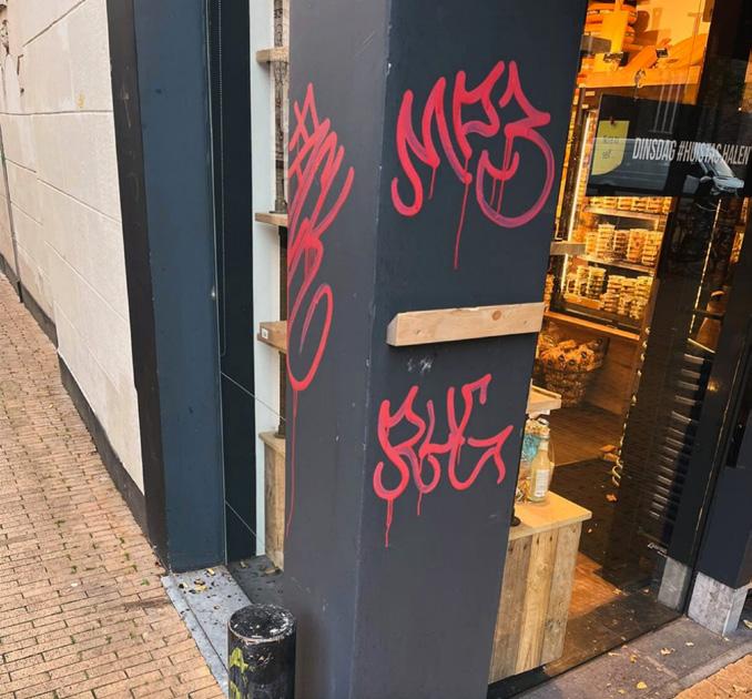 gebroken over de vraag hoe hij aan dat volkladden van zijn muur een einde zou kunnen maken. We vroegen of hij wel eens contact heeft gehad met de graffitisten. Hij zou dat wel willen, maar het gebeurt altijd in het geniep en dus midden in de nacht. Hij kent ze niet en woont ook niet bij de zaak. Zelf heeft hij bedacht dat als er een groot graffiti kunstwerk op de muur zou staan, de kleine krabbelaars er misschien niet overheen zouden spuiten. Met dat idee is hij naar de gemeente gegaan, maar die gaf geen toestemming. Vandaar dat er eigenlijk twee bedrijven in het pand zitten. De kaas is overheerlijk, maar bij het (over) schilderen is nog wel wat ruimte voor verbetering. We wensen vader Anton en zoon Bart veel succes met hun twee ondernemingen.