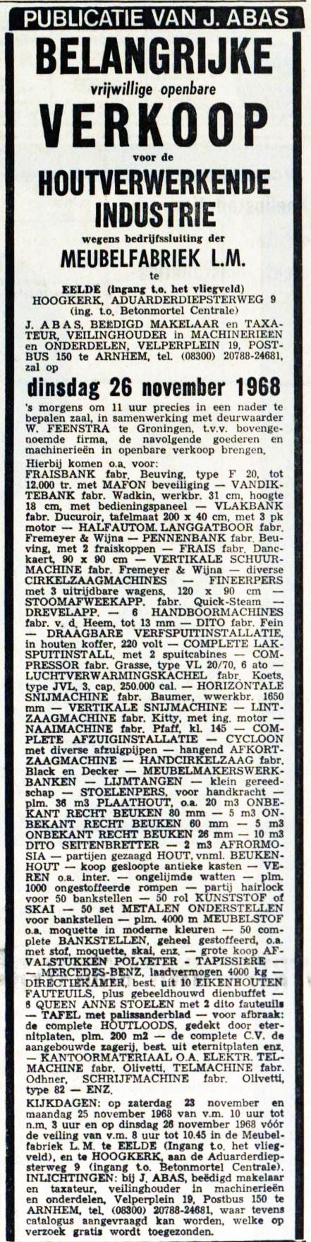 Twee maanden later, op 26 november, wordt de complete inboedel van de Meubelfabriek LM openbaar geveild.