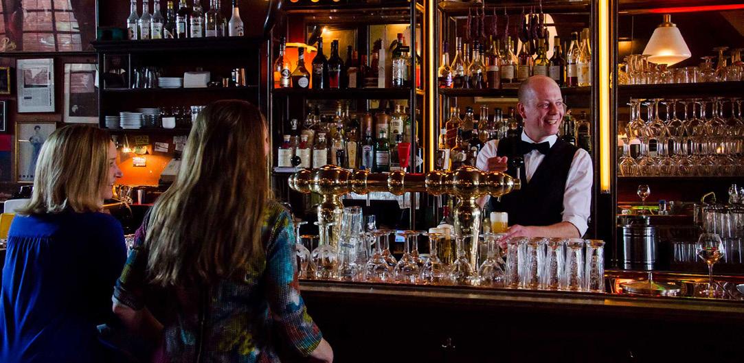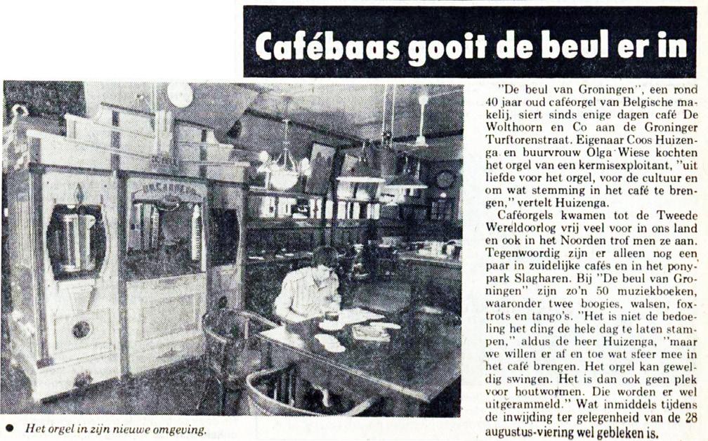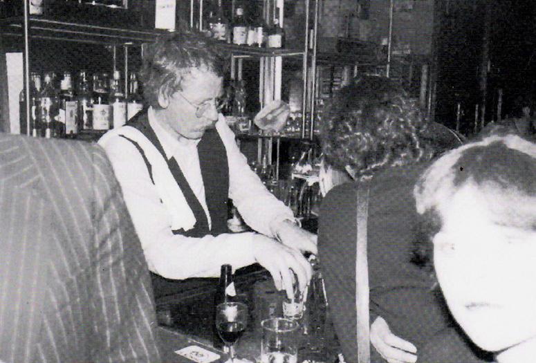 cafés in de stad enorm gedaald. Crisis, oorlog en wederopbouw hadden kennelijk het effect gehad dat de aloude spreuk: "Zoek levenslust in eigen huis, wie elders zoekt die heeft abuis" ook werkelijk de stand van zaken weergaf: in 1960 waren in de stad Groningen nog maar 100 cafés. Vijftien jaar heeft hij het café met onvaste hand geleid, de vaste hand had hij immers nodig om het borrelglas vast te houden en de borrel had hij nodig om zijn niet geringe gastheerschap op peil te houden.
