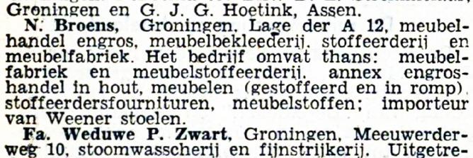Daarnaast heeft het bedrijf nog een derde locatie aan de Eerste Spoorstraat. Hier zit het kantoor. De firma Broens heeft nu alle onderdelen van de meubelbranche in huis: een fabriek, de 'meubelbekleederij' (een stoffeerderij) en de handel en gros.