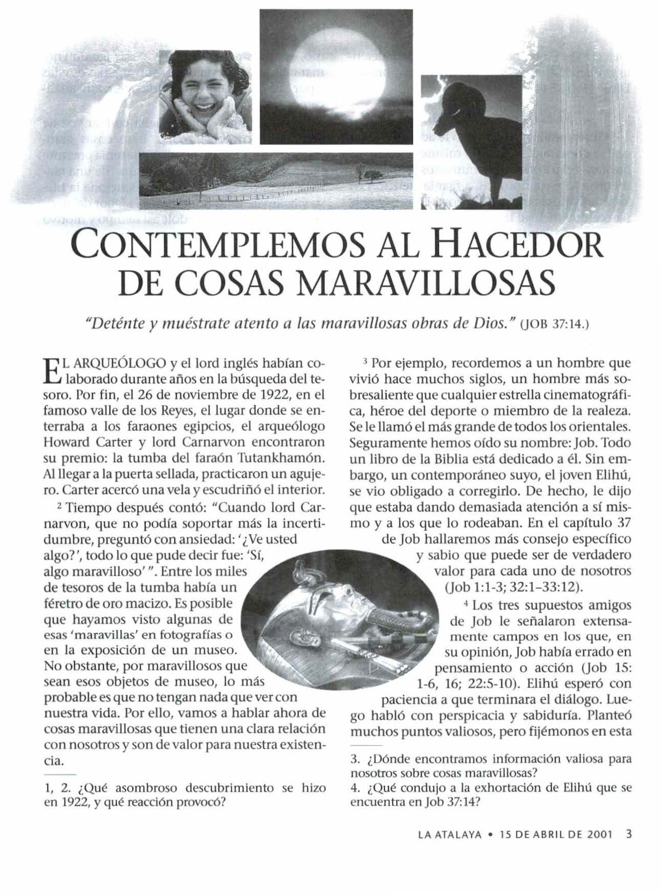 Articles from La Atalaya, 15 de abril de 2001