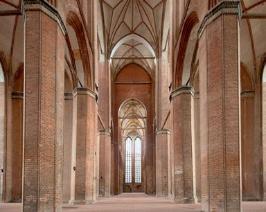 Visible de loin, seule la haute tour de l'ancienne église de SainteMarie a survécu. La nef a été gravement endommagée pendant la Seconde Guerre mondiale et a fi nalement été démolie en 1960. L'importance de l'architecture médiévale en brique est illustrée dans l'exposition permanente "Les chemins du gothique en brique" dans la tour de l’église de Sainte-Marie.