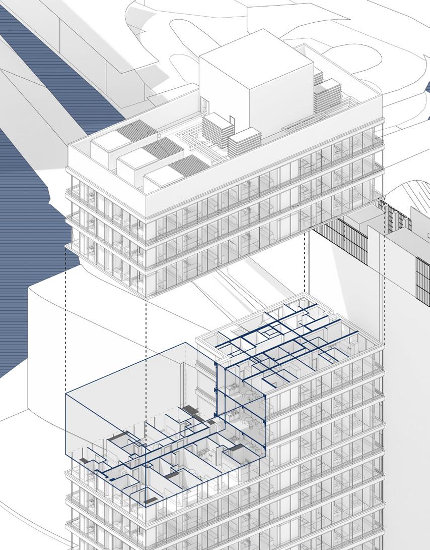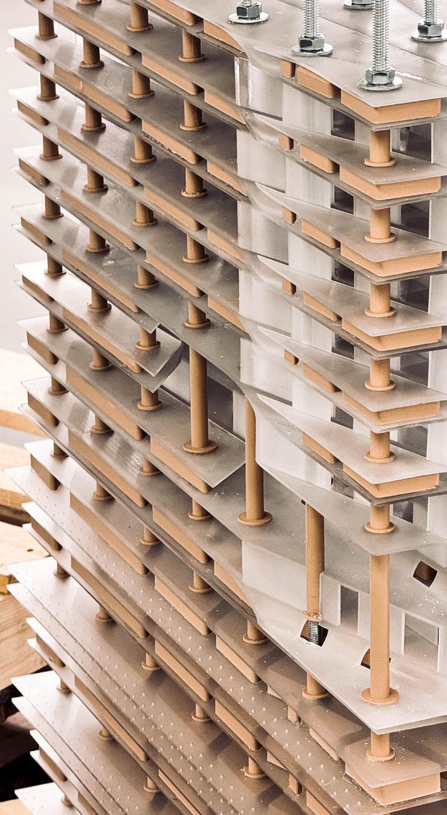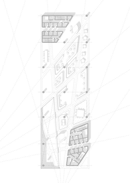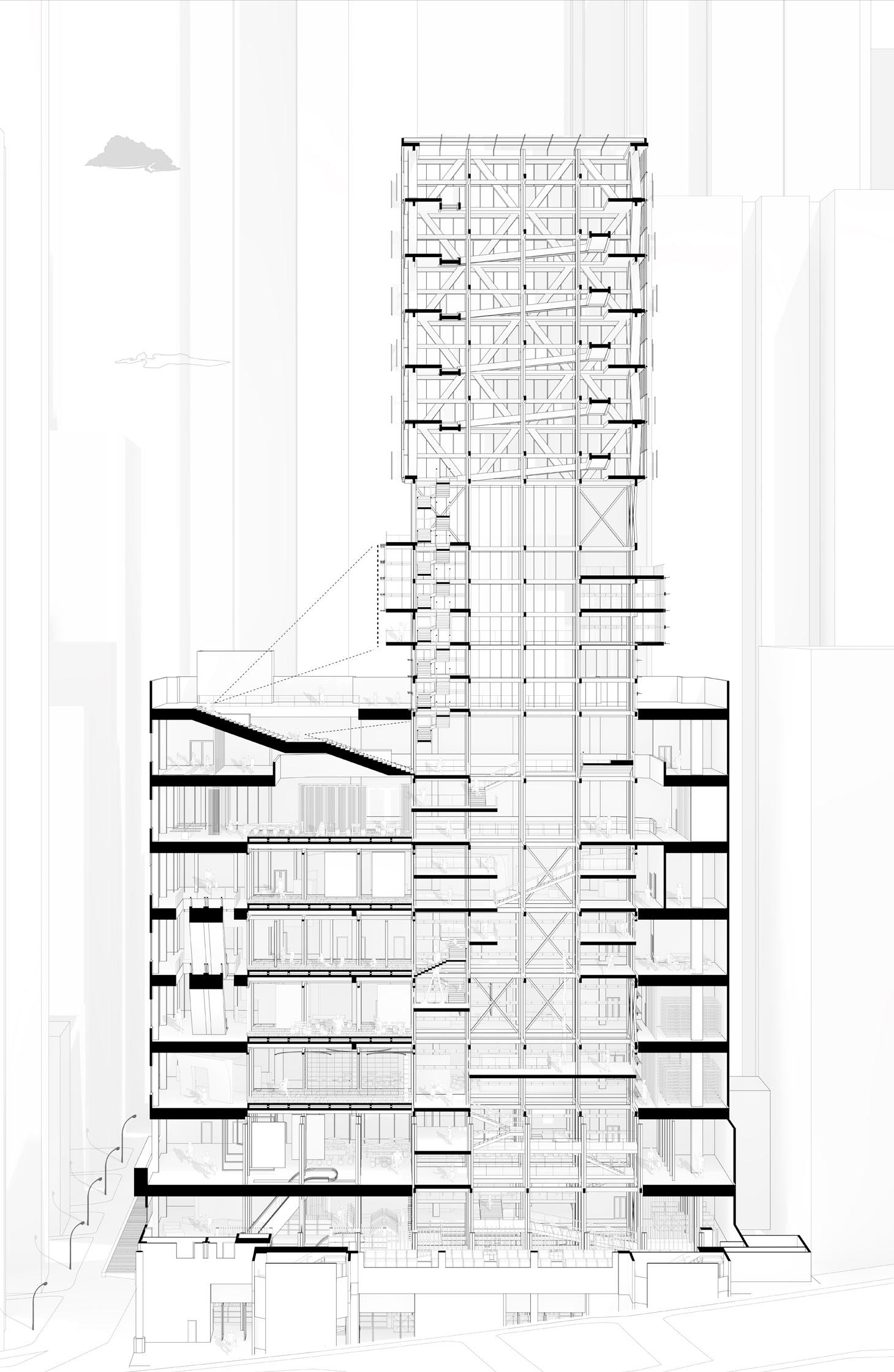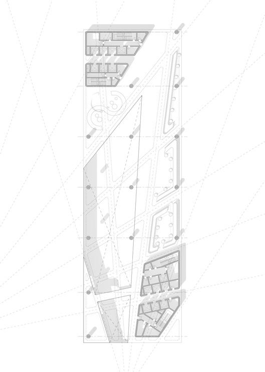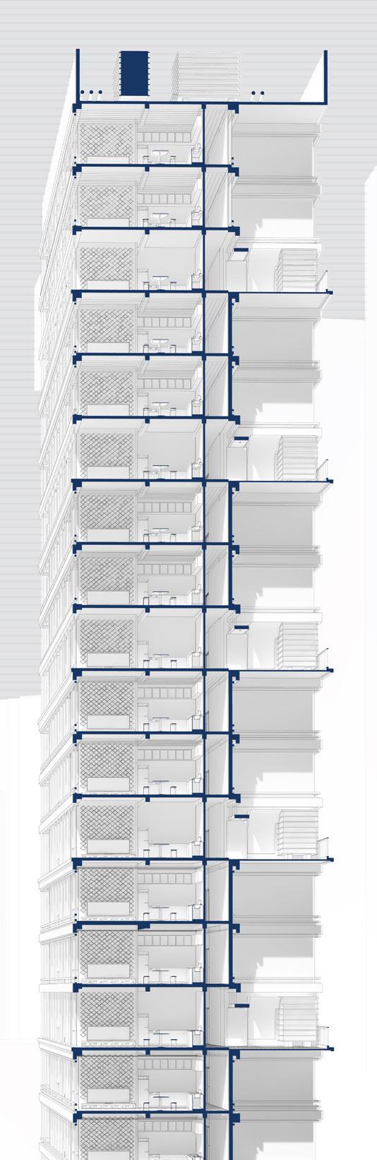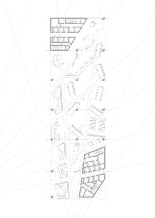 Airflow Channeling: Air from the floor plates to the walls is combining to the structure itself into the ventilation strategy.