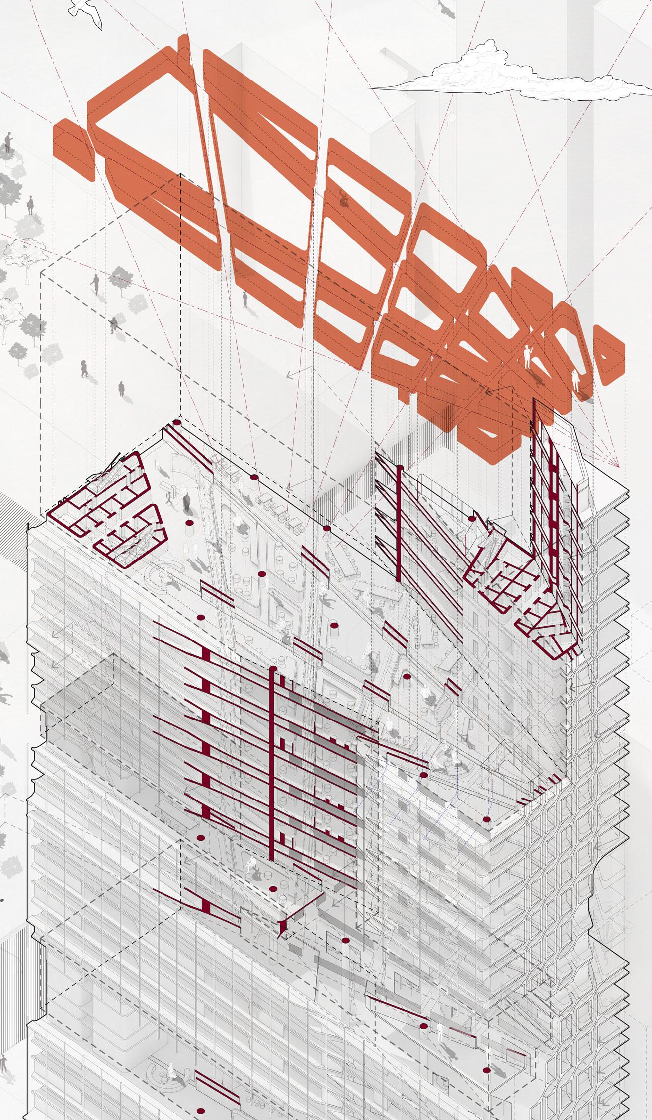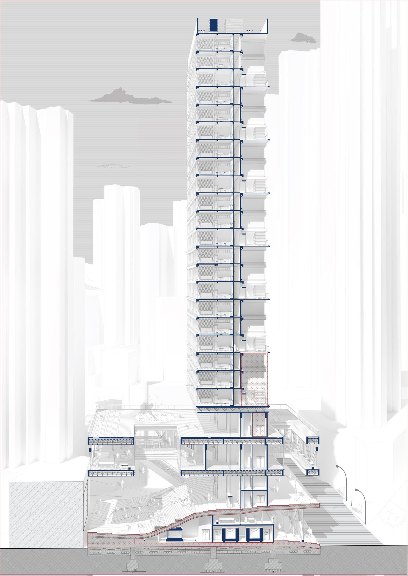 The concept of the wind tower as a ‘social tower’ emphasizes its role in fostering interaction and engagement. It becomes a place where people meet, exchange ideas, and build relationships. The design encourages the use of communal spaces, blending the boundaries between private and public, indoor and outdoor, work and leisure.