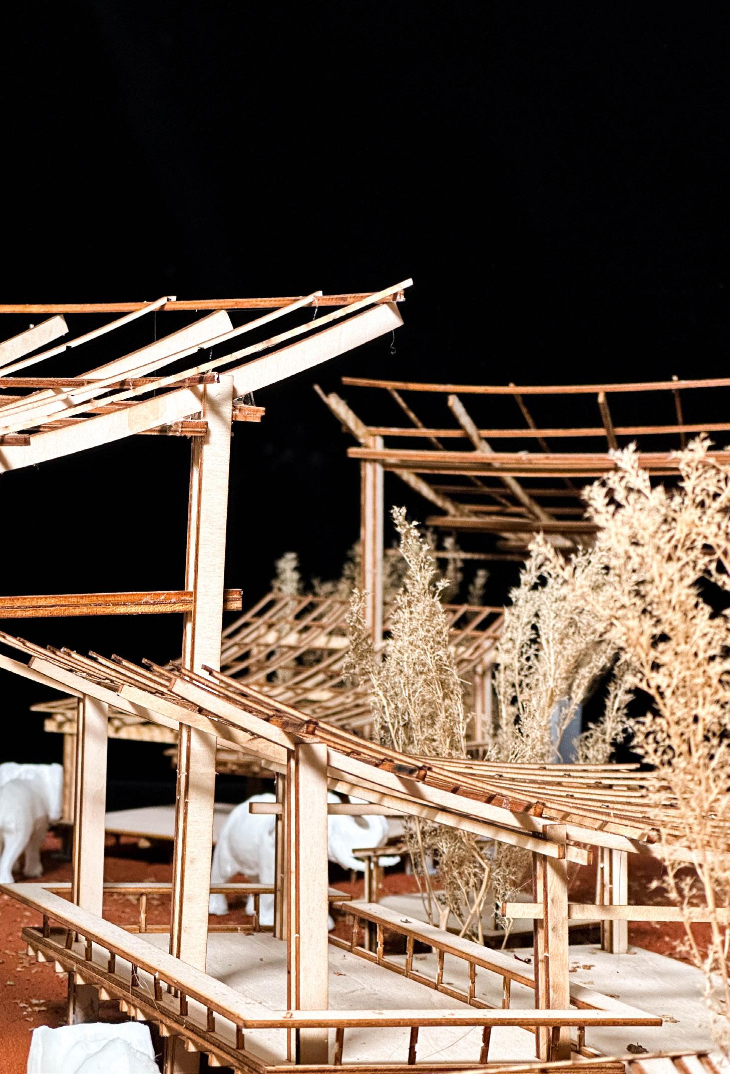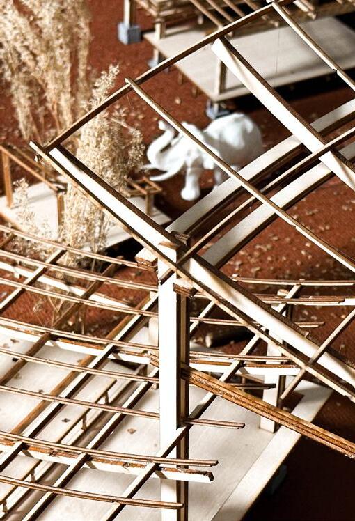 The Elephant Market’s architectural structure is primarily made of wood, using materials and structures that are familiar to the local elephants to ensure their comfort and well-being. The double-wood interlocking structure reduces the use of metal fittings, making it more environmentally friendly and in line with local traditions.