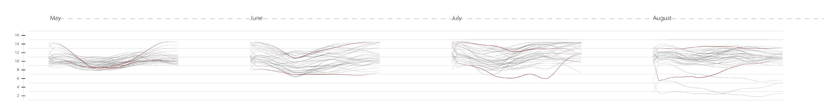 Based on our findings, we will synthesize the data and develop analytical mappings that outline a site-specific heat stress research agenda for the duration of the study. These mappings will visually represent the relationships between environmental parameters, building support systems, and occupant behavior. To enhance the visualization of insolation and airflow simulations, we will construct 3-dimensional physical section models for each site, embedding the analytic recordings within them.