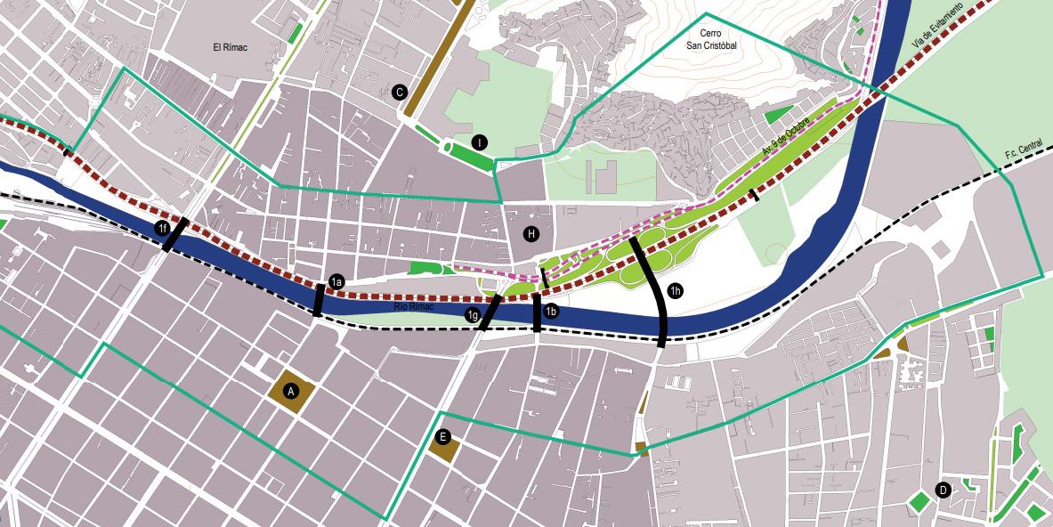 LA VÍA DE EVITAMIENTO ATRAVESARÍA EL ÁREA CENTRAL (ESTE-OESTE) E IMPLICARÍA LA DESTRUCCIÓN DEL MALECÓN LEGUÍA,EL PUENTE HUÁNUCO, OTRO PUENTE QUE TAMBIÉN CRUZARÍA EL RÍO RÍMAC EN EL CENTRO, LOS CUALES TERMINARÍAN DESTRUYENDO LO QUE QUEDABA DE LA ALAMEDA DE ACHO. SE DECIDIO ENREJAR LA MAYORÍA DE LOS PARQUES PÚBLICOS, CON EL FIN DE EVITAR EL DESARROLLO DEL COMERCIO CALLEJERO Y DE MANTENER SU PRESERVACIÓN.