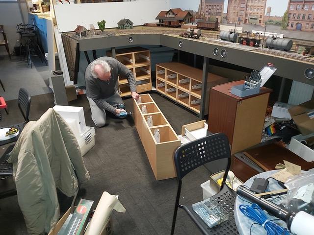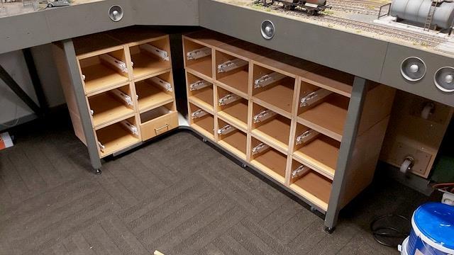 Deze keer is mijn taak als verslagschrijver van de Spoor 1-baan een makkie. Het belangrijkste nieuws, namelijk de baanachtergrond, wordt al beschreven op pagina 10-12 Verder kunnen we melden, dat we een aantal opbergkastjes van sloopmeubeltjes, die Chris voor ons gered heeft, tot een unit samengebouwd hebben, die met zwenkwieltjes mooi weggereden kan worden onder de baan. Weg met die pleurisrommel. Een kantine hoort er netjes uit te zien. Toch? Ook willen we kijken of we de verlichting nog wat sfeervoller kunnen maken dan met de huidige TL-buizen. Maar dat is een zorg voor later en misschien pas na het volgende Zijspoor in beeld. Everard