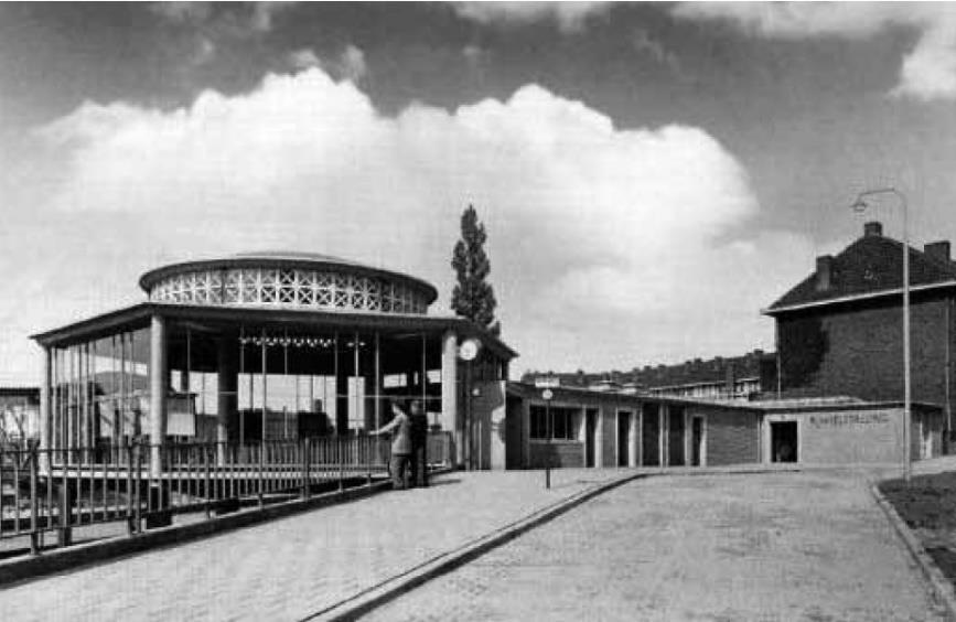 Stationsentree Arnhem Sonsbeekzijde was tot 2010 in gebruik aan de Amsterdamseweg. Het was net als het toenmalige hoofdgebouw een ontwerp uit 1954 van H.G.J. Schelling, huisarchitect van de Nederlandse Spoorwegen. Op de oorspronkelijke locatie 'zweefde' het gebouw boven de grond op een plateau op palen. Goed te zien op de coverfoto van dit Zijspoor. Een voetgangersbrug vormde de verbinding tussen het maaiveld en het station. Na de verwoestingen van de Tweede Wereldoorlog was er een dringende behoefte aan een nieuwe stationsgebouw, ook door een toenemende reizigersstroom. Schelling heeft meerdere stationsgebouwen ontworpen, zoals in de jaren vijftig de stations van Enschede, Zutphen, Hengelo en hetAmstelstation inAmsterdam in 1939. Wat opvalt aan de naoorlogse ontwerpen zijn de slanke betonconstructies en de hoge glaspuien gevat in ragfijne staalprofielen. In de opvatting van Schelling moest beton zuiver worden toegepast. Dus: de constructie tonen en niet bekleden met baksteen. Dat betekende ook geen pleisterwerk of andere afwerkingen