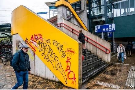 Bij de bar is al een stevige plaat gemonteerd, waar t.z.t. een print met groen landschap op komt. Onderaan de lange wand komen tot aan het station nog muurtjes, die de overgang van horizontaal naar verticaal gaan camoufleren.