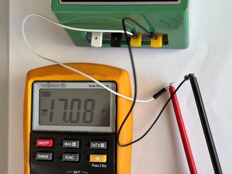 Trafo 220V meting waarde wisselstroom. 17,08 AC (wisselstroom).