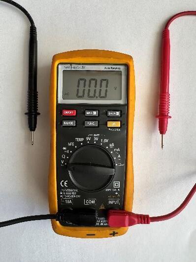 Deze is onmisbaar en ze zijn al verkrijgbaar voor zo’n € 20. Hiermee zijn minimaal volt zowel gelijk- als wisselstroom, ampère en weerstand te meten. Bij storingen onmisbaar. Een multimeter heeft een rode en een zwarte aansluitdraad met meetpennen. Sluit deze correct aan, namelijk de rode op de plus- en de zwarte op de min-aansluiting.
