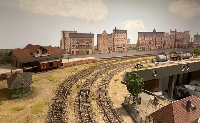 Nou, zullen we aftrappen bij onze wens om onder de blauwe lucht met witte wolken een leuke langgerekte afbeelding met huizen, bomen, industrie en landschap te plaatsen? Zodat je met de mooie spoor 1-treinen op de voorgrond een passend, realistisch geheel krijgt als je aan een kopje koffie of iets sterkers zit in de kantine. Toen deze wens Hans (ja onze Zijspoor-redacteur) ter ore kwam en Ron en ik het hadden over ene mijnheer Jowi uit Oostenrijk, klonk gelijk al de bekende kreet: véél te duur maar wel erg mooi. Jowi’s werk hadden we al eens gezien bij On traXS in Utrecht met de modelbanen Braubach en Wilhelmshöhe. Dat waren supermooie achtergronden voor Spoor 1 (maar ook voor andere schalen). Echt professioneel en geheel naar wens van de klant. Een uitgebreide catalogus van de mogelijkheden staat op www.modellbahn-hintergrund.com
