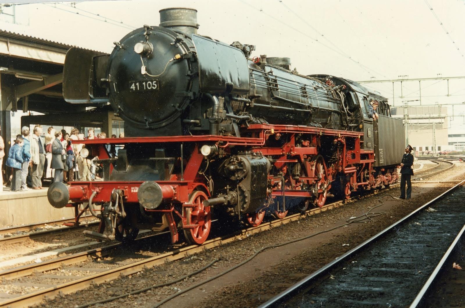 Niet duidelijk waarom en wanneer, maar gewoon een mooie foto…de 41 105 van de SSN op bezoek in Arnhem zal ergens in de jaren ’80 zijn. De SSN-loc was dienstvaardig tussen 1980 en 1991.