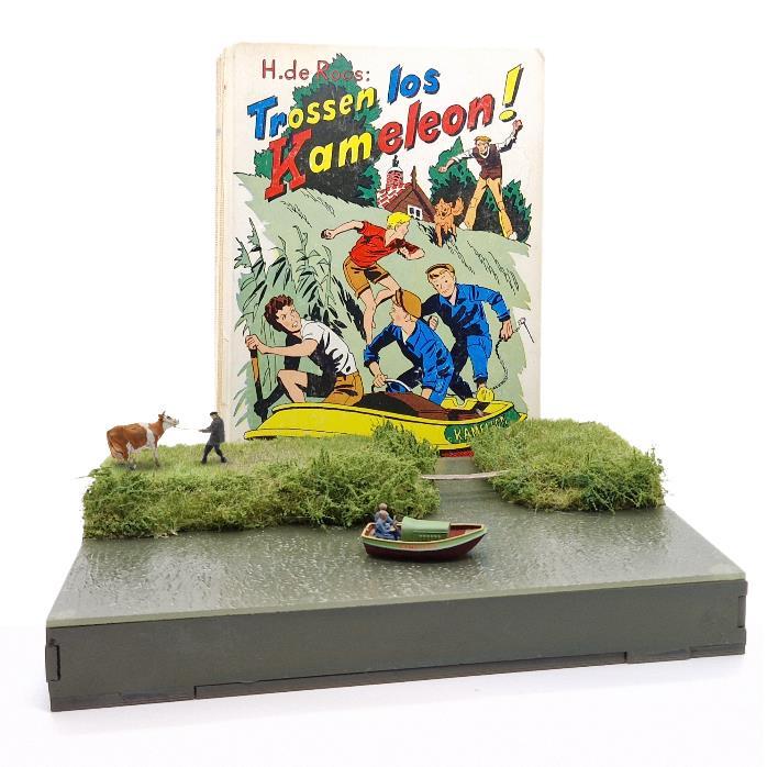 We zetten koers naar Bentink Modelspoor in Apeldoorn, maar meer speciaal gaan we flink terug in de tijd en wel naar begin jaren ’50. De schippers van de Kameleon, wie kent ze niet? Hielke en Sietse Klinkhamer, de Friese tweeling en hun boot de Kameleon zijn voor velen wel bekend. Het eerste boek van Hotze de Roos, De schippers van de Kameleon, verscheen in 1949. De spannende avonturen die zij op het water beleefden, zijn daarna in meer dan zestig delen beschreven en er zijn miljoenen exemplaren over de toonbank gegaan.