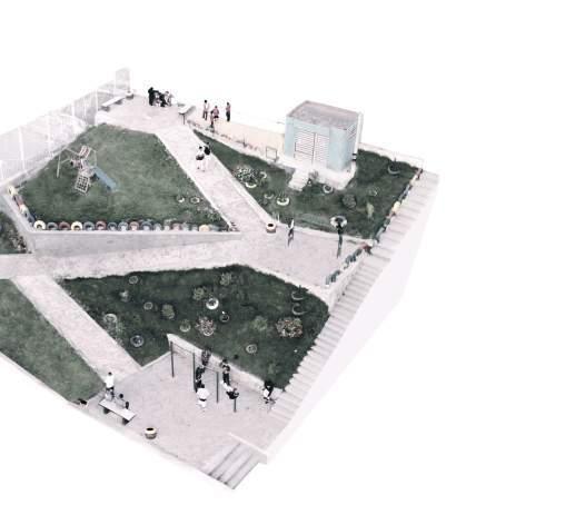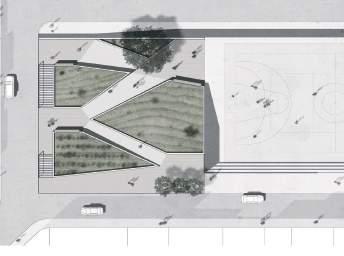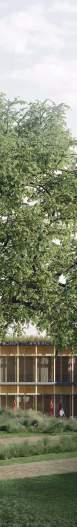 kann diese Fläche als Retentionsraum für anfallendes Regenwasser dienen. Das ,,grüne Wohnzimmer‘‘ schafft eine Mitte für Interaktion, Kommunikation und Aufenthalt. Die Grünflächen bilden einen Ort der Erholung und des Austauschs untereinander mit Blick auf den Schwarzwald.