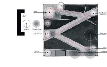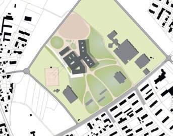 Potential für die vielfältige parkartige Bespielung im Zusammenhang von Krankenhaus, Schule, Mensa und Wohnen