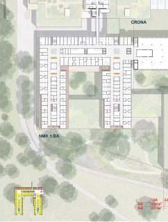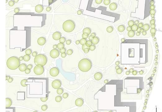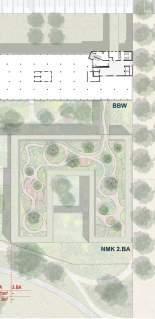 Die Planung umfasst einen großzügigen Park zwischen Gymnasium und Klinikum, der von den unterschiedlichen Nutzern gemeinschaftlich genutzt wird. Ebenso
