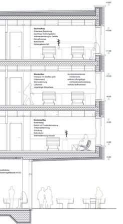 Die inneren, nichttragenden Wände sind als doppelt beplanktes Ständerwerk geplant, das alle wesentlichen Anforderungen an Schallschutz, Brandschutz und Bauphysik problemlos erfüllt.