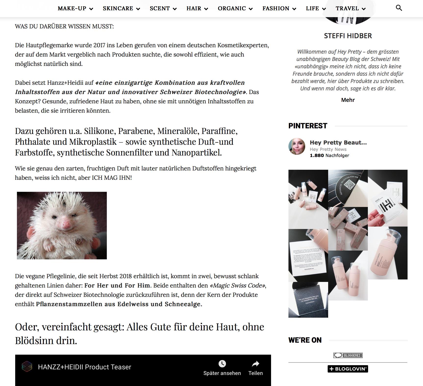 be autifullikeme ch, circ a/around EUR 34 HANZZ+HEIDII ist eine vegane Schweizer Kosmetiklinie, die auf chemische Zusätze und Reizstoffe verzichtet und auf die Kombination von Schweizer Biotechnologie und Inhaltsstoffen der Natur setzt. Die Produkte sind für alle Hauttypen geeignet und jeweils speziell für HER (Frauen) und HIM (Männer) entwickelt worden. Dazu gehört der Reinigungsschaum ERAZE, der bei Männern auch als Rasierschaum genutzt werden kann.