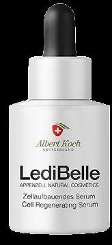 Die Alpenmarke Ledibelle aus Jakobsbad schwört auf zellerneuernde Appenzeller Ziegen molke und auf frisches, regenerierendes Ja kobsquellwasser. Das Ergebnis sind hypoallergene, stärkende Produkte, die auch empfindliche Hauttypen vertragen. Zellenaufbauendes Serum, 30 ml, CHF 65.90