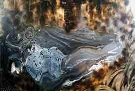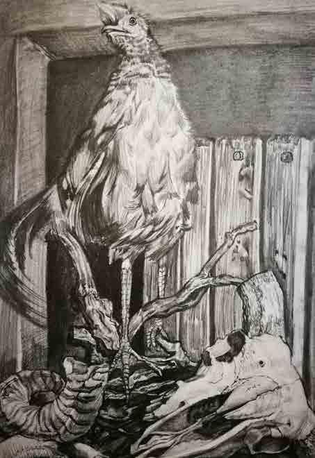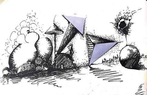 Dream #1, 12” x 18”, Pen and candy package on paper