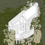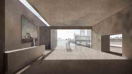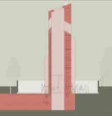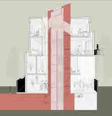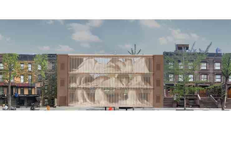 Located at 333 West 46th Street, Manhattan, New York City, the soft bodies are supported by two cores on the sides, holding up a large, elevated floor span, which allows the interaction between the interior and street. The cores are made with brown stones, materially merging with the street historical buildings.