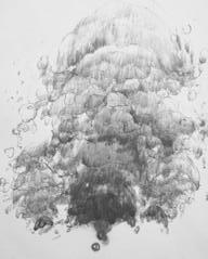 The study also contains a series of experiments with soap bubble, a stop motion drawing which studies the bubble dynamic in frames and details trying to capture the voids that makes the bubble to be identified as an object in terms of tautness and transformation.