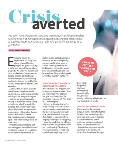 You don’t have to wait until stress and worries reach a crisis point before seeking help. It’s time to prioritise ongoing nurturing and protection of our mental health and wellbeing – and here are seven simple steps to get started... Writing | Bonnie Evie Gifford