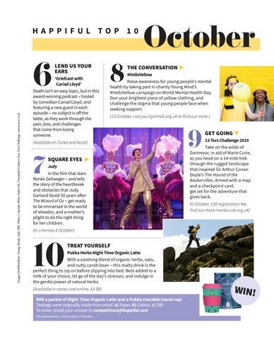 #HelloYellow Raise awareness for young people’s mental health by taking part in charity Young Mind’s #HelloYellow campaign on World Mental Health Day. Don your brightest piece of yellow clothing, and challenge the stigma that young people face when seeking support. (10 October, visit youngminds.org.uk to find out more.)