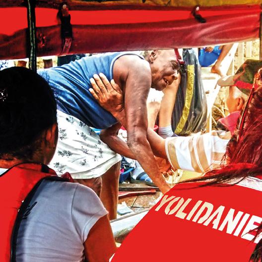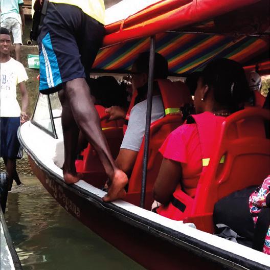 En el puerto hay mucho movimiento. Del Transmilenio de la selva bajan unos y se suben otros. Ves descargar costales, una máquina de coser, un televisor, una moto, un equipo de sonido, varios perros, una caja con pollos y otra con gallos de pelea, a los que embarcan con los ojos vendados como si fueran peligrosos criminales. De pronto, un muchacho de unos 15 años, negro y altísimo me extiende la mano y me dice: "Siga al fondo, paisa". A todos los que venimos de afuera nos dicen paisas sin importar si eres o no un paisa verdadero. "Hágase a la orilla que allá hay espacio". Miro y solo queda una silla al lado de una mujer totémica, que ocupa ella sola dos de las tres bancas de la fila. Sientes la mano callosa y áspera como el palo de un azadón y una fuerza descomunal que te sube a la barca con ligereza. El chico te sonríe, en verdad nos sonríe a todos como si su trabajo fuera el más feliz del mundo. Esa es la actitud de la gente de la zona, siempre sonríen. Bueno, no todos; los indígenas sonríen poco, por lo general sonríen entre ellos, pero no con los demás. Alguien me dijo alguna vez que los indígenas del litoral del San Juan se acostumbraron a ser invisibles y poco a poco se están volviendo transparentes. Ahora entiendo de dónde viene esa transparencia, pero en ese momento me pareció un comentario raro.