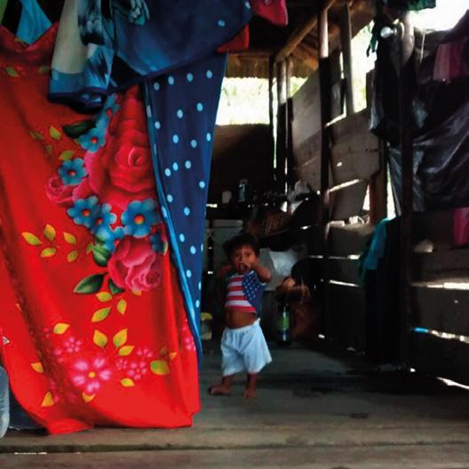 Levantas la vista y ves a una niña indígena que te mira sin sonreír, pero con una inmensa curiosidad. Le sonríes y logras que te muestre una sonrisa a la que le faltan los dos dientes frontales superiores. Entiendes que es muy pequeña para estar levantada a esa hora. Escuchas unas palabras que no entiendes y la niña sale corriendo; se le ha encargado una misión muy importante: ir hasta el río para avisar si ya está cerca el “Transmilenio de la selva”, una barca comunitaria que recoge a los trabajadores que van río abajo y que se puede ver porque está iluminada con velas que la revelan a una distancia de cientos de metros río arriba.