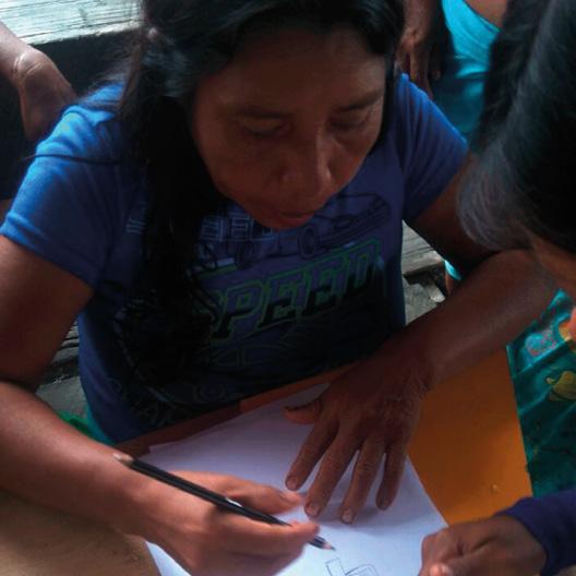El ataque moralista me dura poco, me vence el cansancio. La selva empieza a cantar con la voz de miles de grillos, sapos, ranas, borrachos, zancudos y poco a poco me dejo abrazar por Morfeo. El sueño me dura poco, pero ya amanece y debemos empezar a las 8 en punto. Vuelvo a reírme, la gente nunca llega a tiempo por estas tierras, y no porque no quieran. Algunas mujeres no están en el resguardo, sino que están en un pequeño municipio a dos horas río arriba, haciendo una minga para construir un salón comunal. Entonces las ocho serán las diez y seguramente las diez serán las once. Efectivamente, empezamos a las 2 de la tarde.