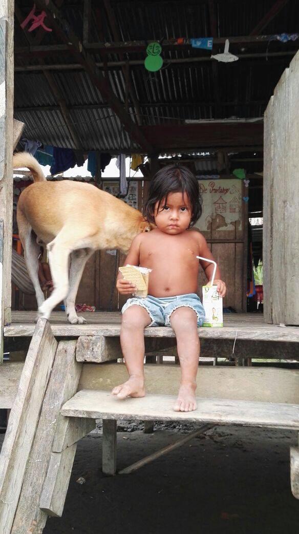 Hemos llegado ya cayendo la noche y hemos estado viajando desde el amanecer. Euclides nos ha preparado lo que para él es una cena muy exclusiva: un humilde plato de arroz con carne, no con pescado que es lo común en el resguardo. Para mi sorpresa, nos ofrecen Frutiño, un polvo con sabor a frutas que puedes conseguir en cualquier supermercado de Bogotá. Una de las integrantes de mi equipo le pregunta a Euclides el porqué del jugo en polvo. La respuesta nos sorprende a todos: "No hay fruta", nos dice Euclides de una forma muy natural. El río se había llevado hace unos años los árboles de pan coger y no era económicamente sostenible para ellos volver a sembrar, porque una ONG les daba sagradamente una caja con alimentos enlatados, en los que venía una generosa “donación” del patrocinador de la dichosa caja, así como leche en polvo y diferentes sazonadores que les aliviaban a las cocineras la labor de picar hierbas y la elaboración de adobos entre muchos “alimentos” que poco a poco estaban reemplazando las comidas tradicionales del resguardo. Obviamente, los empaques de plástico y diferentes bolsas de frituras flotan a la orilla del río.