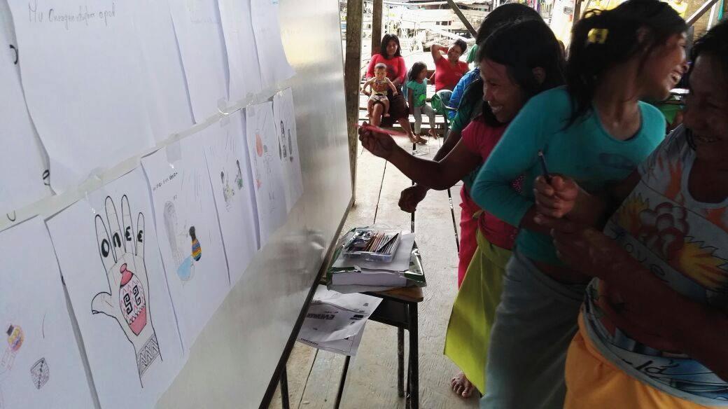 Pasan dos horas. En ese rato almorzamos y veo de nuevo a los niños correr despreocupados sobre los empaques de frituras vacíos. Todos están panzones, pero no con una panza feliz y alimentada, sino con un nido de parásitos intestinales que me hace pensar también en la película Alien, el octavo pasajero. Se me acerca Daniel y le pregunto si no está preocupado por Alejandra y me dice que tranquilo, que en ese lugar los conocen y que Euclides es un tipo honesto. Yo solo miro el río y de pronto aparece Alejandra. Sonríe y yo respiro aliviado. Los dichosos tanques están inservibles, pero están ahí y le sirven para tomar la foto de la “evidencia” para el donante. Alejandra no come, pero pide ir al baño y se aleja de nuevo. Ahora es mi turno. Mi estrategia es hacer dibujar a todos. Ponemos algunas reglas: el dibujo debe ser sencillo, debe ser significativo, debe contar una historia y donde no llegan las palabras, llegan los dibujos. Símbolo, ícono, marca, dibujo, dibujo, dibujo. Buscamos un nombre para la marca y aprendo algunas palabras, como que Phidag significa estrellas y que Onee significa “Feliz”.