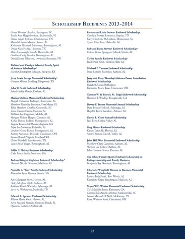 The White Family Spirit of Auburn Scholarship in Pallavi Savant Entrepreneurship and Family Business Department ofBirmingham, Aviation AL Benjamin Jay Donahue,
