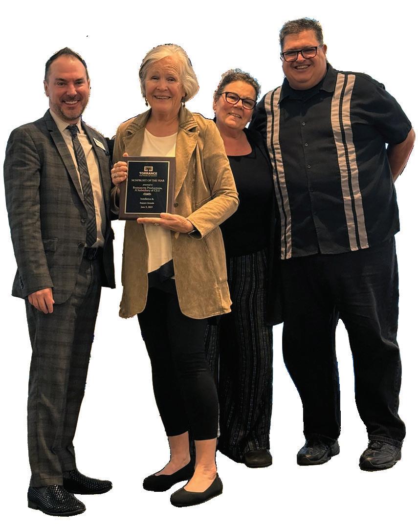 Brainstorm Productions, a subsidiary of the Center for Learning Unlimited (CLU), was recognized as the “2025 Nonprofit of the Year” by the Torrance Area Chamber of Commerce on June 5, 2025. Every year, the Torrance Chamber of Commerce presents the Impact Awards Celebration. “This celebration acknowledges the extraordinary efforts of business and individuals,” explains Donna Dupperon, the Chamber’s President & CEO. In attendance to receive the accolade were Brainstorm Productions’ Program Director, Ginny Erxleben, Program Coordinator, Sylvia Owens, and Executive