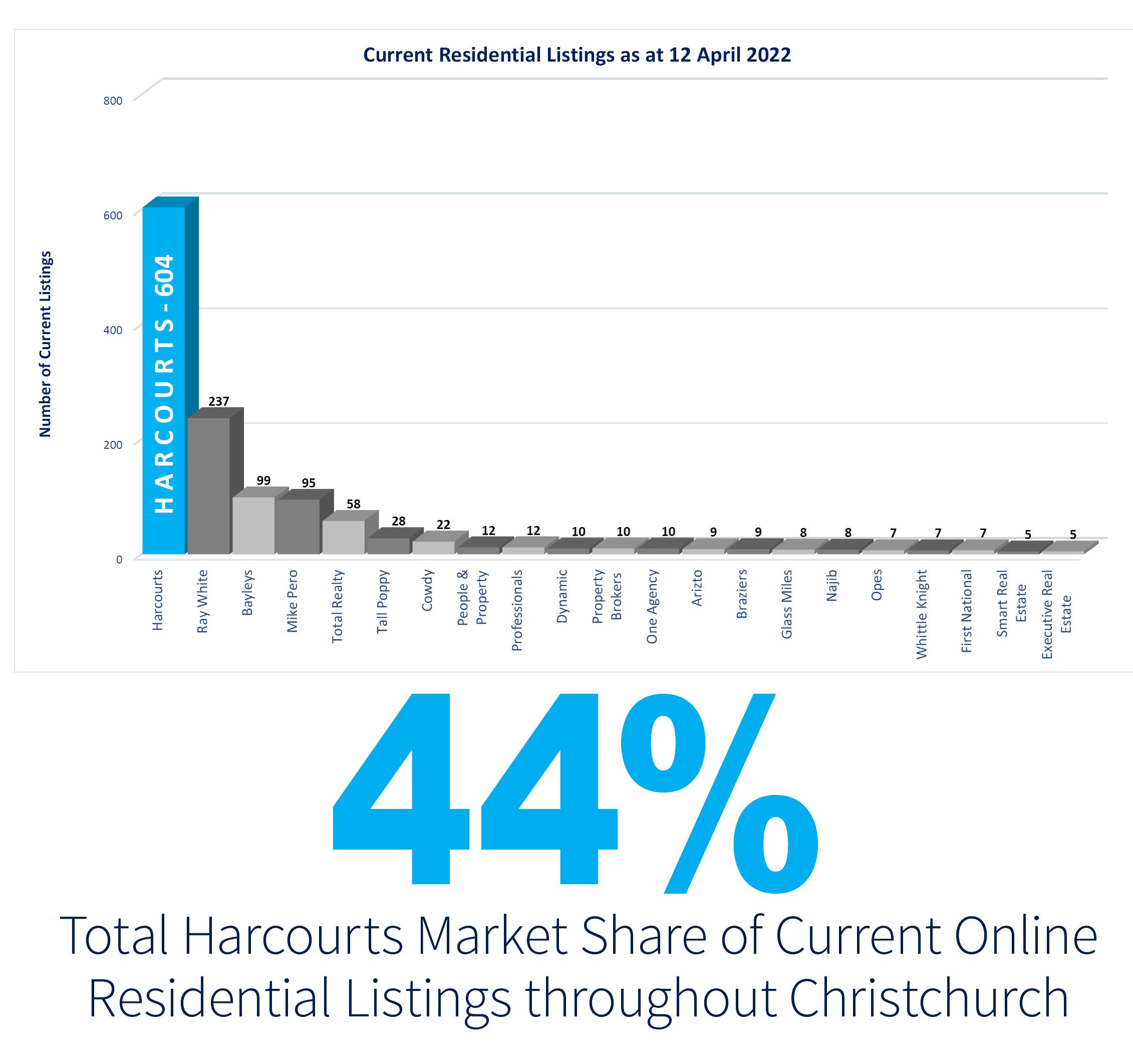 The strength the Harcourts brand means we list 40 - 50% of all the Christchurch properties on the market at anytime.